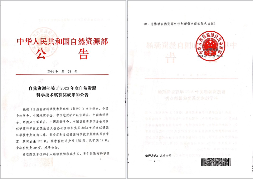 我校参与申报的科研项目斩获2023年度自然资源科技进步一等奖