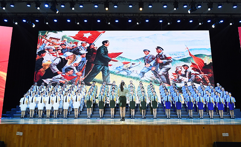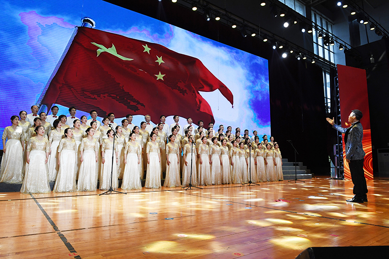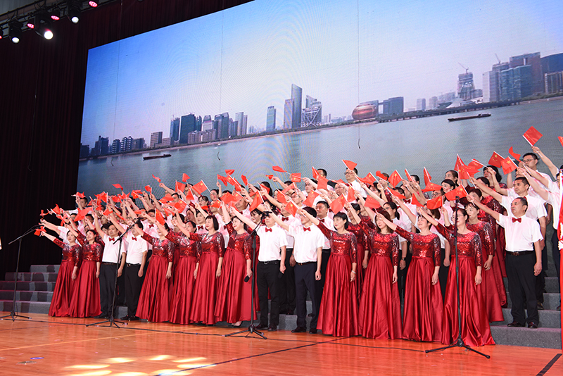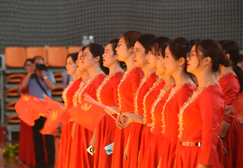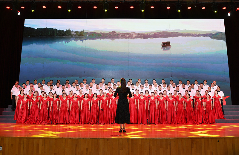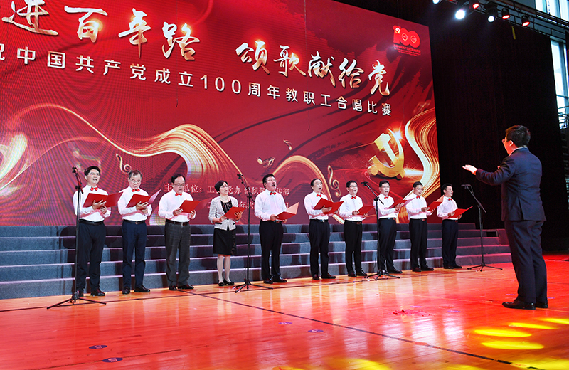 “没有共产党就没有新中国”“唱支山歌给党听,我把党来比母亲”“五星红旗迎风飘扬,胜利歌声多么响亮”“家是最小国,国是千万家”……6月28日下午,我校体育馆内红旗招展、灯光璀璨,处处洋溢着激情与豪迈,“奋进百年路 颂歌献给党”教职工合唱大赛在这里举行。全校24支队伍依次登场,用一首首节奏鲜明、耳熟能详的经典,讴歌百年来中国共产党为人民谋幸福、为民族谋复兴的丰功伟绩,表达出全体教职工永远跟党走的坚定信念。