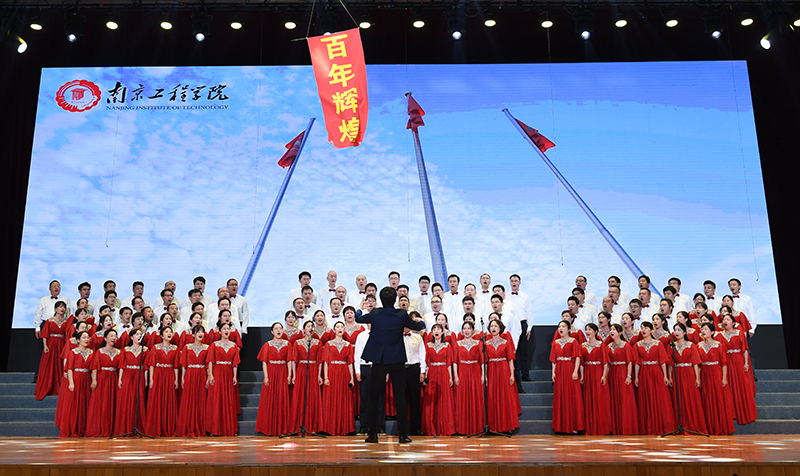 比赛现场,评委、女高音歌唱家巨凤霞和男高音歌唱家朱瑞带来的一曲《阳光路上》再一次将比赛推向了高潮,在场观众从歌声中感受到在中国共产党的光辉下,中华民族滚烫的血脉和南工程奋进的脚步。活动最后,全场响起《歌唱祖国》的动人旋律,全体人员挥舞着手中的五星红旗,共同歌唱祖国、歌唱党。台上台下,歌声环绕,掌声雷动,汇聚成一片欢乐的海洋。