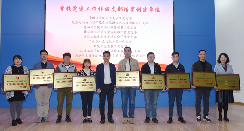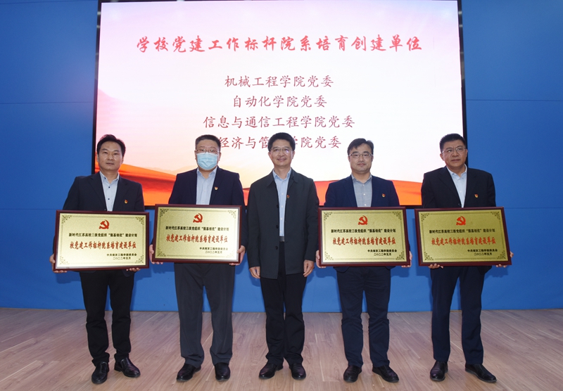 会上,校领导、党委常委为在“强基创优”建设计划工作中分别获评国家级、省级、校级标杆院系、样板支部的22家基层组织授牌。