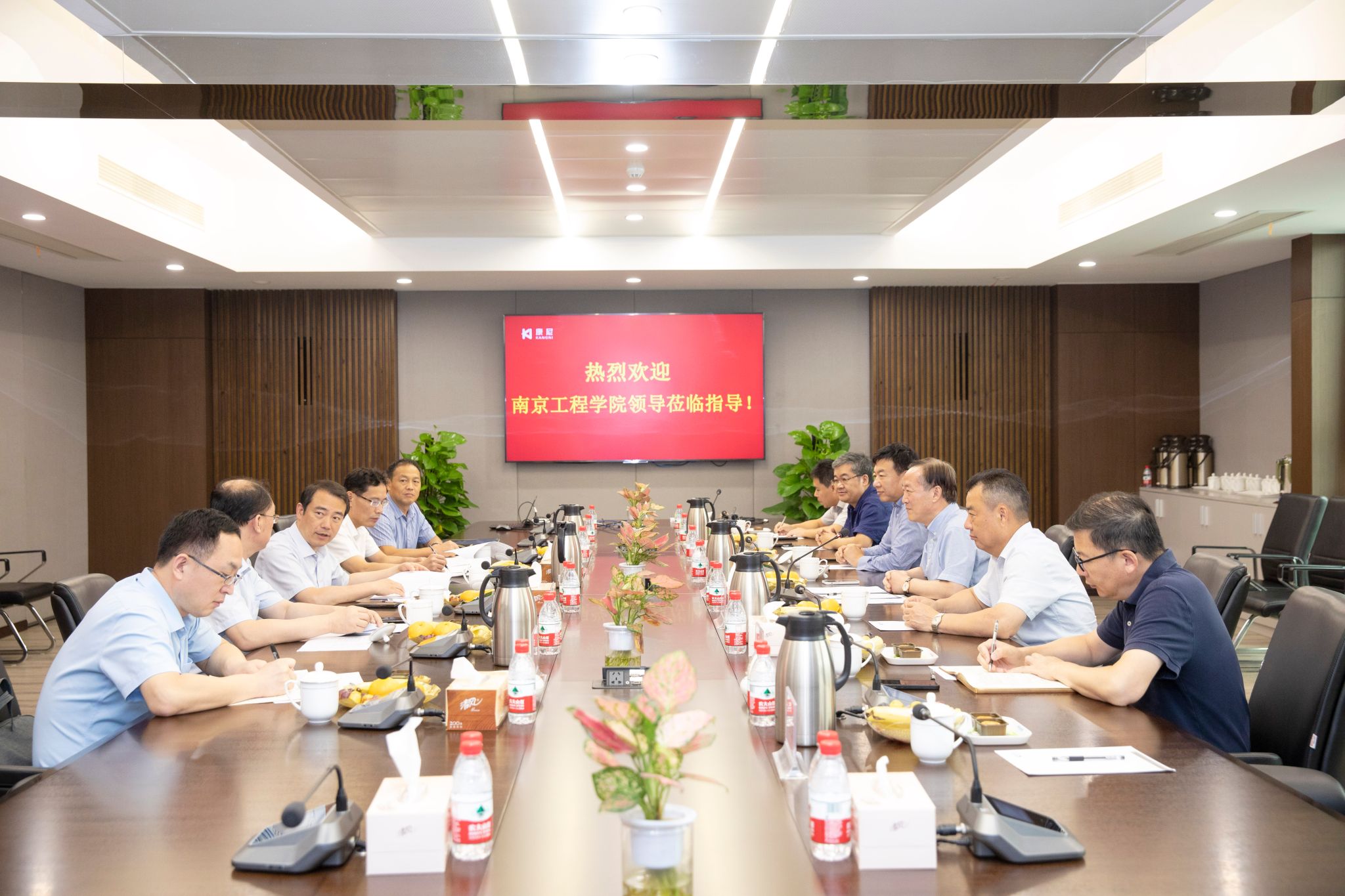 在交流座谈中,陈颖奇、高文明对南工程校领导一行的到来表示欢迎与感谢,他们介绍了公司发展历程与经营状况,指出康尼公司之所以能取得今天的成就,得益于凯发宽松的创新创业氛围,也与来自凯发的科技成果支撑与人才支撑密不可分。这种血浓于水的“亲情”让历代康尼人始终心系凯发、关注凯发发展,校企合作更是结出了累累硕果。他们表示,公司愿意与凯发进一步深化合作,谱写校资企业发展和校企合作的新篇章。