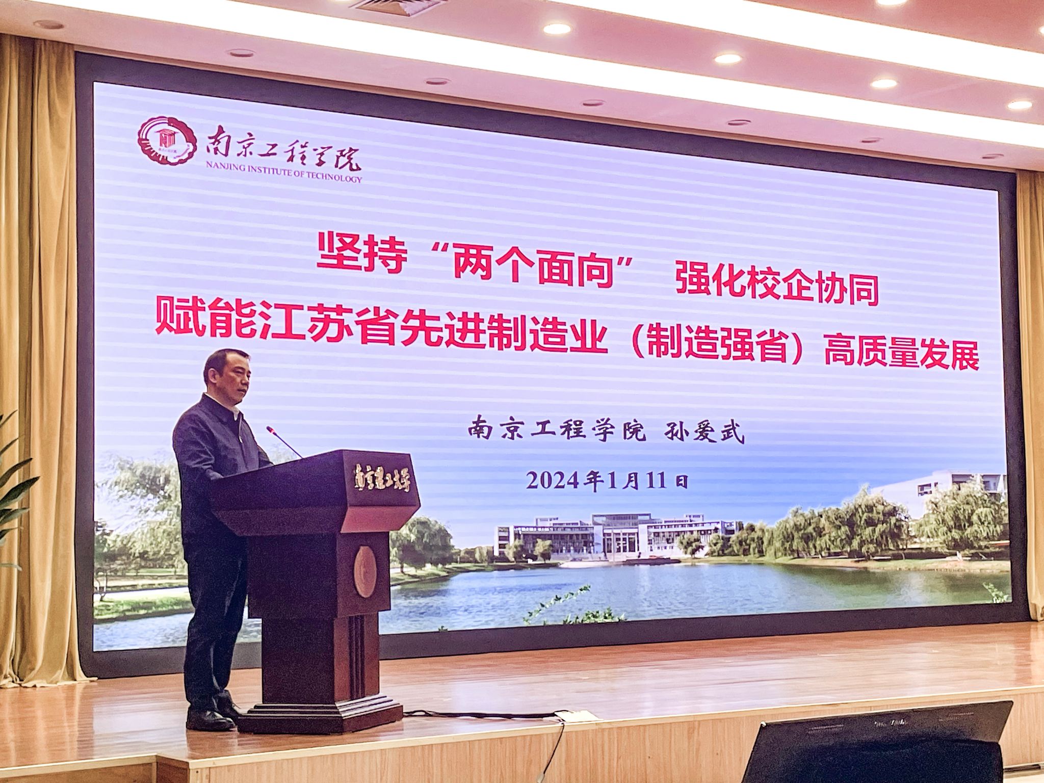 1月11日,由中共江苏省委研究室、江苏省工业和信息化厅、南京理工大学联合主办的学习贯彻习近平新时代中国特色社会主义思想推动先进制造业政产学研用深度融合研讨会在南京举行。工业和信息化部原党组成员、总工程师田玉龙,省委副秘书长、省委研究室主任周进,省工业和信息化厅厅长朱爱勋,南京理工大学党委书记张骏,我校党委书记孙爱武等出席研讨会。