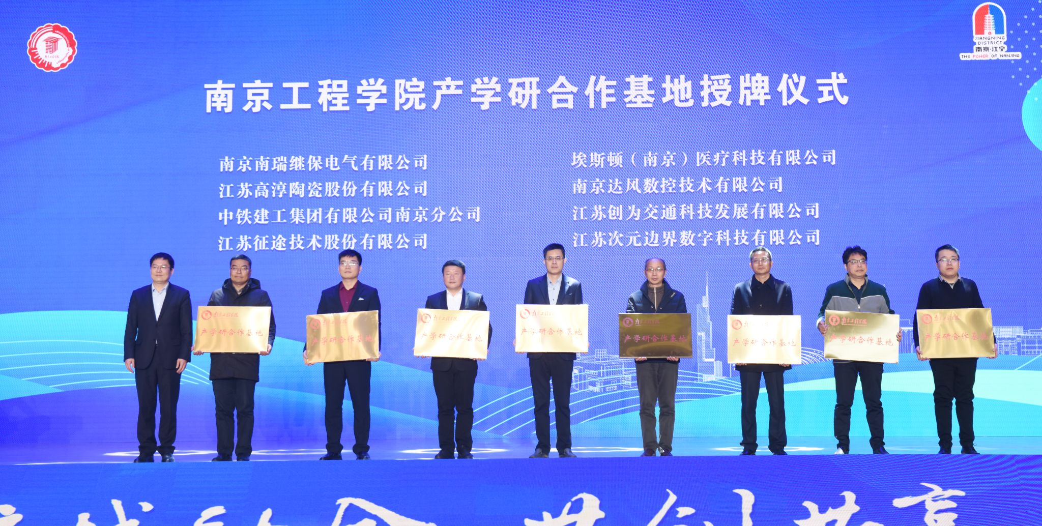 会上成立了校城科技发展联盟,进行了科技攻关项目对接签约,为产业教授颁发聘书,并为一批江苏省研究生工作站、产学研合作基地、学生就业基地、实践教育基地授牌。