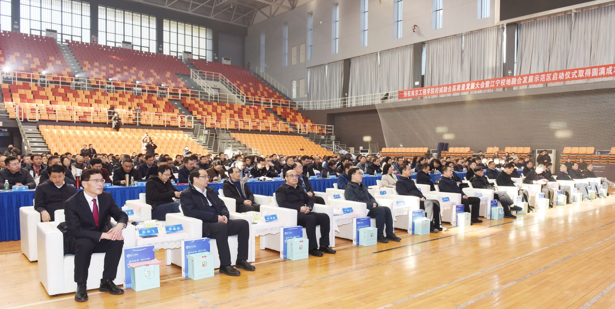 江宁区委、区政府有关部门负责同志,市各科技产业镇长团成员,重点合作单位代表、各产学研合作及签约项目代表、校友代表,凯发全体中层干部、师生代表以及媒体代表参加大会。