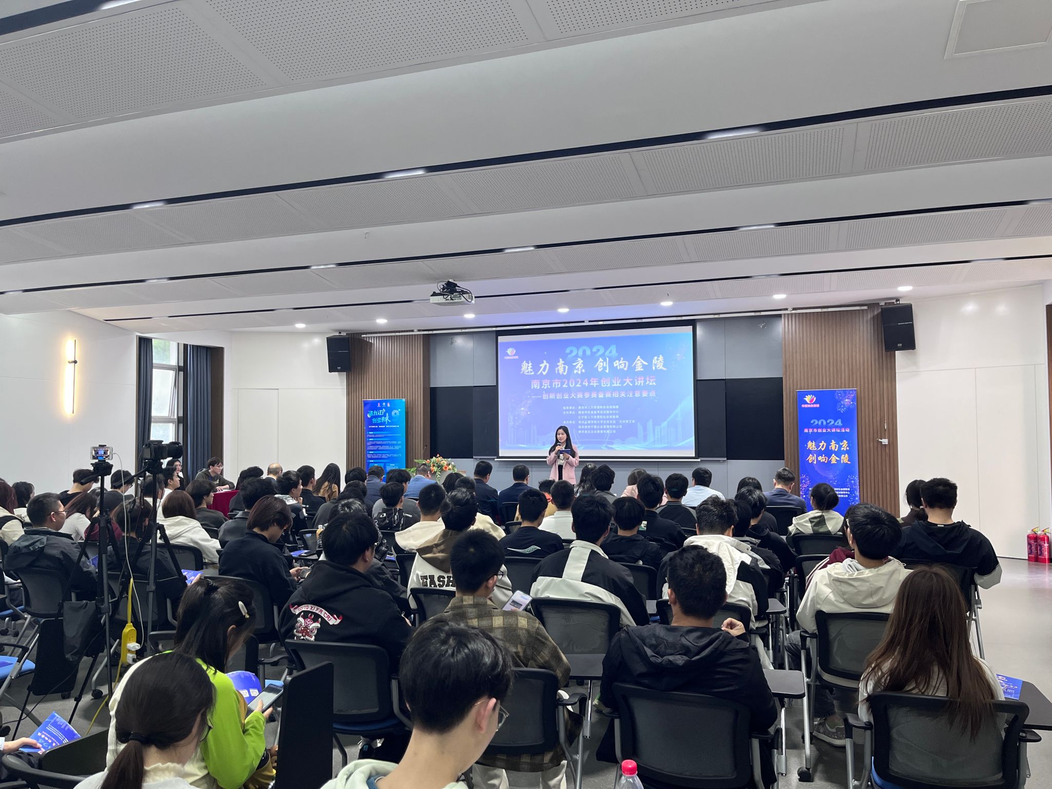 活动中,南京市职业技术培训指导中心和区人社局工作人员分别就南京市创业培训政策、江宁区区情和“梧桐林杯”青年大学生创业大赛奖励扶持政策向全体参会人员做详细解说,并勉励在场学生要勇立双创潮头,成为南京引领国家创新型城市建设的参与者、奋进者、实践者。
