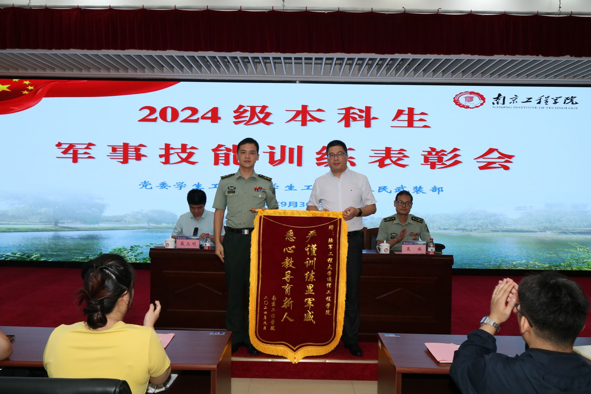 会上宣读了2024级本科生军训表彰决定,对在此次军训中表现突出的单位、班级、工作者、教官、助教和学员进行表彰。优秀学员代表和优秀教官代表分别上台发言,分享军训的感悟与成长。