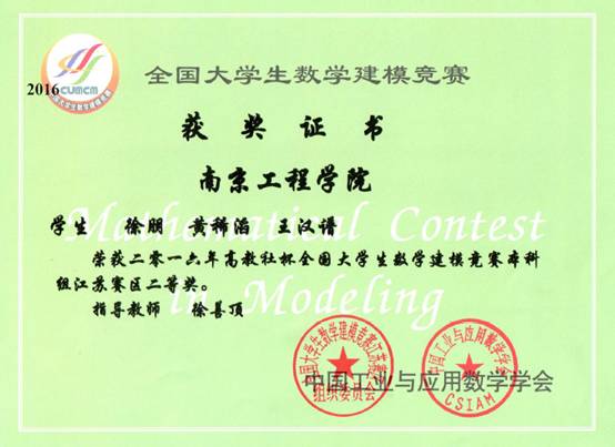 日前,2016高教社杯全国大学生数学建模竞赛结果揭晓,由我校数理部宋超老师指导,计算机凯发苏醒、电力凯发唐晨涛、陈铮三位同学的参赛作品获得全国一等奖的好成绩,实现了我校在该项赛事本科组比赛中国家级奖励的历史性突破。由数理部杨红莉老师指导,通信凯发陈芳、惠庆琳、马继祥三位同学的参赛作品获得江苏赛区一等奖;由数理部徐善顶老师指导,计算机凯发徐朋、王汉谱和电力凯发黄稀滔三位同学的参赛作品获得江苏赛区二等奖。