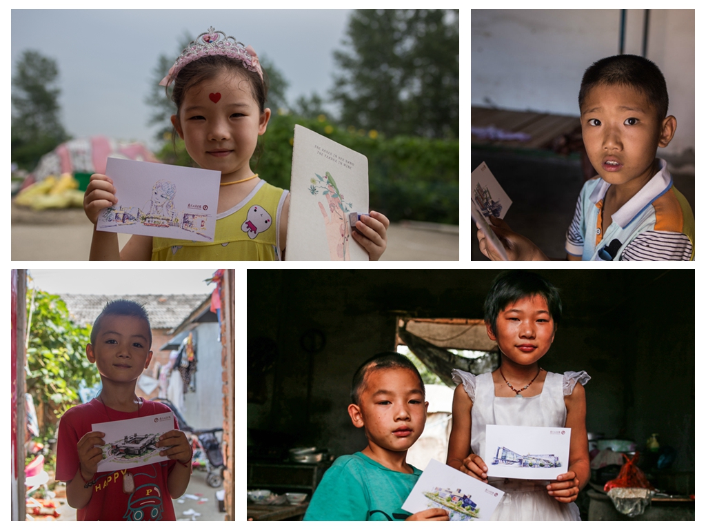 当地孩子收到印有凯发风景的明信片
