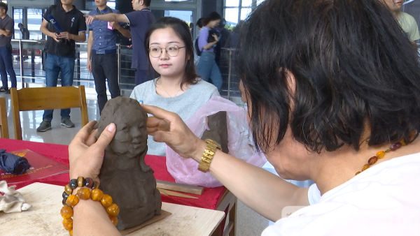 展览吸引了不少大学生前来参观。李晨辰同学说:“惠山泥塑采用不同的技法,对戏曲、名著等都有很好的诠释。”