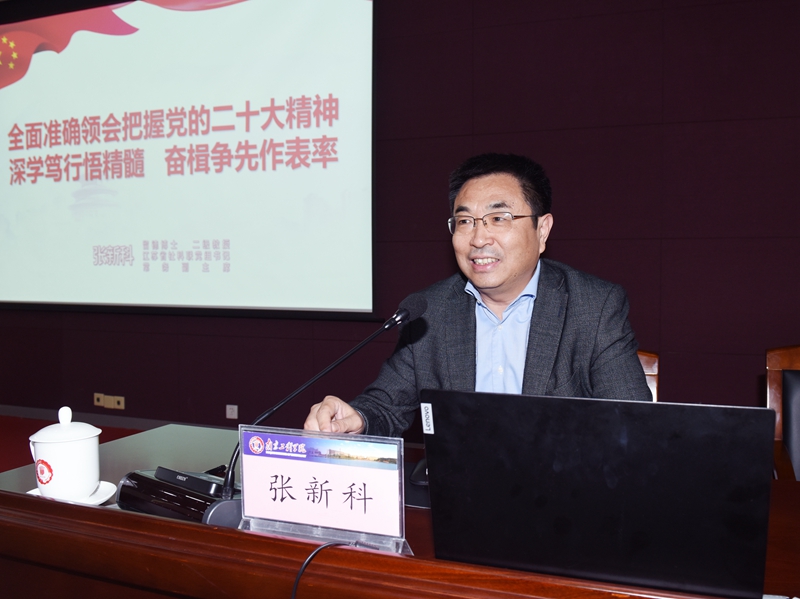 报告会上,张新科书记紧扣党的二十大报告原文,围绕党的二十大的主题、过去五年的工作和新时代十年的伟大变革、马克思主义中国化时代化、中国式现代化、全面建设社会主义现代化国家的目标任务、坚持党的全面领导和全面从严治党、应对风险挑战等七个方面,结合江苏省发展实际,对党的二十大精神进行了全面系统、深入浅出的讲解。报告最后,他希望参会师生全面准确领会把握党的二十大精神,用党的创新理论武装头脑、指导实践,深学笃行悟精髓,奋楫争先作表率。宣讲报告主题鲜明、站位高远、逻辑清晰、论述深刻,具有很强的政治性、理论性、实践性和指导性,是一堂紧跟核心、感恩奋进的政治引领课,内涵丰富、深刻生动的党史教育课,思想深邃、富有哲理的理论辅导课。