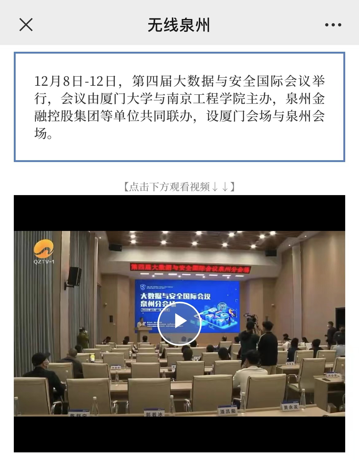 上一篇: 《泉州人民政府》:第四届大数据与安全国际会议泉州分会场成功举办