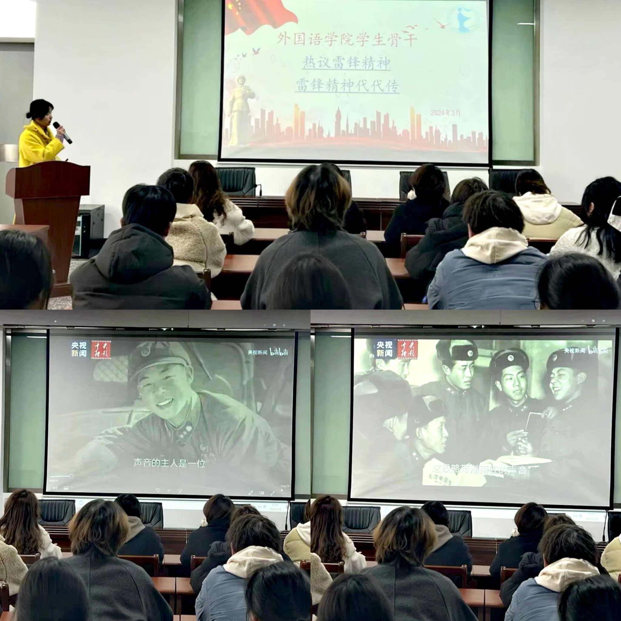 雷锋之路,光影传承。学院分团委组织学生骨干学习雷锋精神,通过事迹讲解、影片观看等方式让学生对雷锋同志生平有了更加深入的了解,切实加强学生骨干的思想建设。在观看《雷锋是怎样炼成的》纪录短片后,雷锋事迹和精神在团学组织中引发了广泛讨论。他们纷纷表示愿意在学习和生活中以雷锋为榜样,在提高专业技能的同时将奉献与爱心融入日常生活,在铭记历史中践行雷锋精神,在抚今追昔中坚定前行意志。