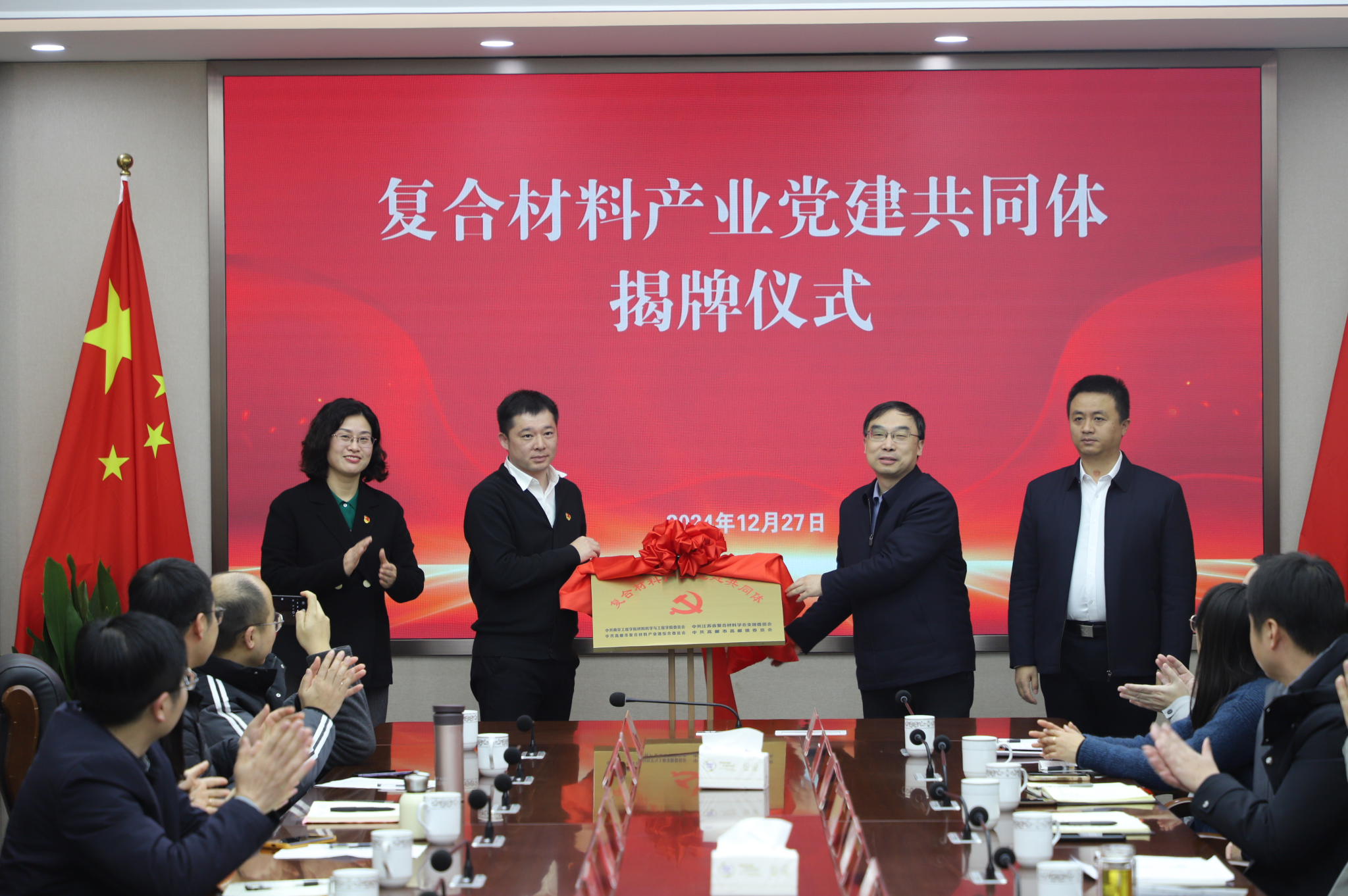 为充分发挥专业学科优势,精准赋能地方材料产业链的高质量发展,12月27日下午,材料科学与凯发党委携手江苏省复合材料学会党支部共赴高邮市,与高邮市复合材料产业链综合党委开展“党建领航·链出新材”党建联盟主题活动。高邮市副市长周振中,高邮镇镇长黄晓帅、副书记黎鹏,复合材料产业链综合党委书记李志国,江苏省复合材料学会党支部书记耿杰,材料科学与凯发党委班子、教工党支部书记、各专业负责人和企业代表参加活动,活动由黄晓帅主持。