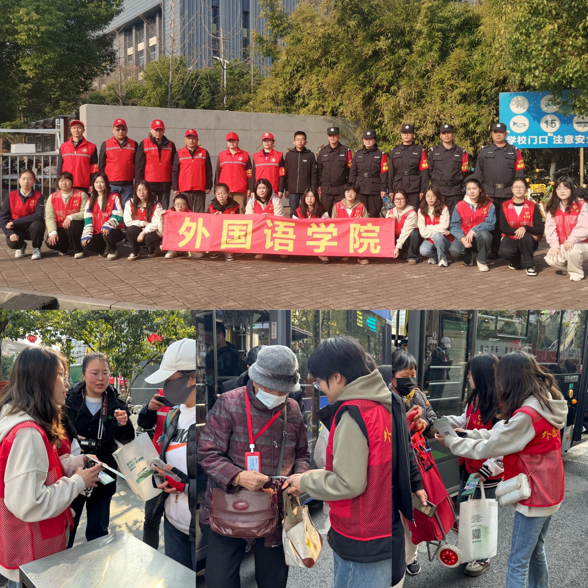 巡检公交线路,绿色出行显担当。学院联合江宁公交公司开展“守护线路安全,绿色出行有我”活动。志愿者在公交站台关注乘客需求,为他们讲解公交线路信息,搀扶老年乘客上下车,搬运行李,并协助巡检人员排查安全隐患、推广“宁易行”智慧出行软件,以实际行动践行绿色出行理念,提升安全文明出行意识。
