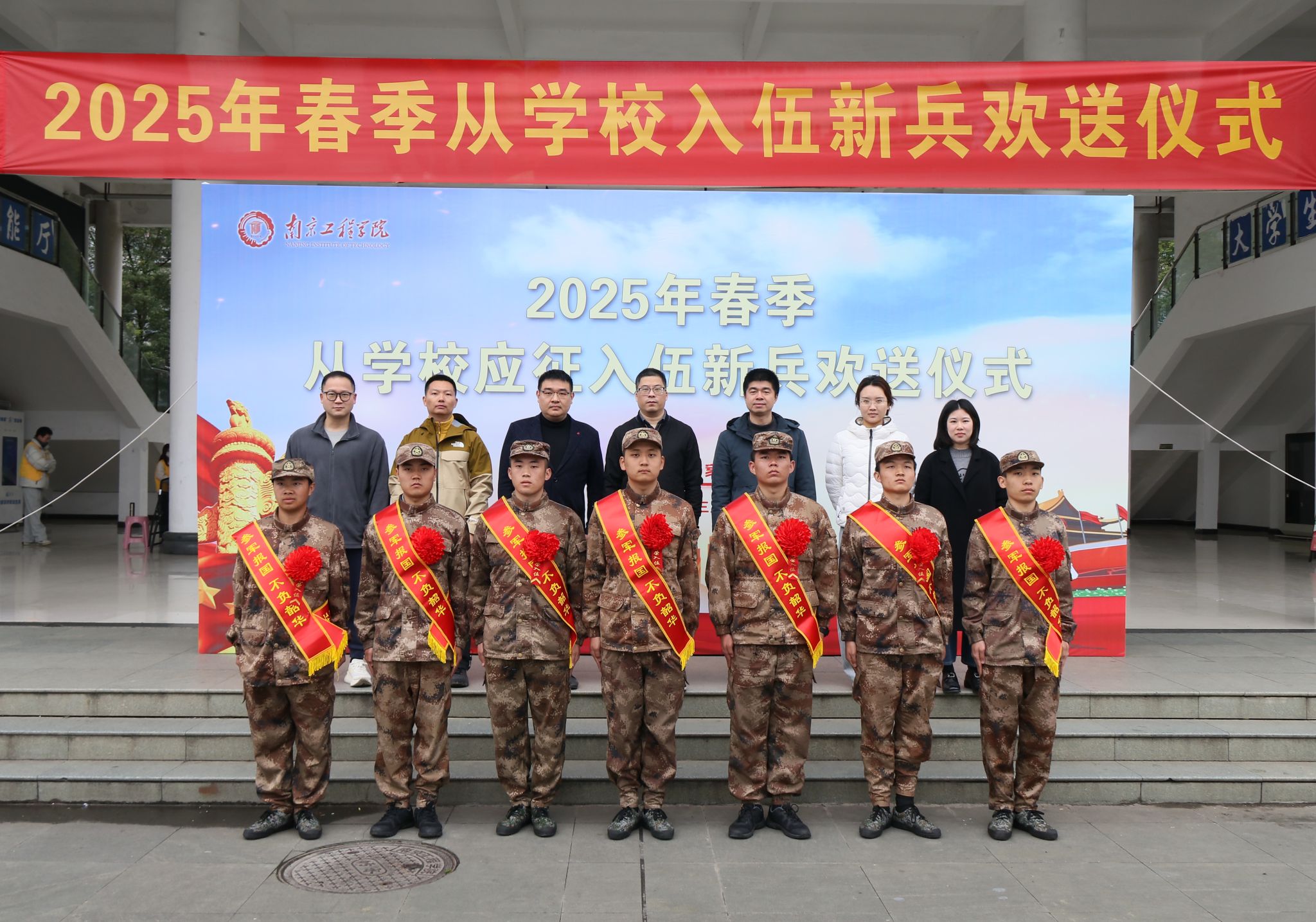 3月15日上午,人民武装部举行2025年春季从凯发应征入伍新兵欢送仪式,7名新兵身着戎装、胸戴红花,踏上军营征程。从凯发应征入伍新兵及其所在学院学生工作负责人、辅导员,人民武装部全体工作人员参加欢送仪式。