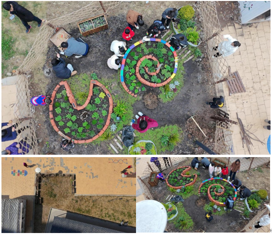 该项目是艺术与设计学院硕士研究生仇志澳、邱慧雯、马韵、唐雨及东南大学硕士研究生赵哲组成的“泥好营造”社区花园团队,联合南京市江宁区淳化街道新华社区、中国药科大学中药学院、邗城社会工作服务中心、51造园、黛牧园艺、牧田机械,探寻的儿童友好、公众参与、居民自治深度融合的社区治理新路径。课题组通过线上线下调研访谈,提出全龄共享的“可食、零废弃“主题共建花园策略,并于新华社区开展生态自然认识工坊、可食香草花园共建、跨代际“朴门永续-生态循环共创工作坊”三大劳育与美育实践活动,前后共近百名高校志愿者、社区居民、政府与企业代表参与其中。